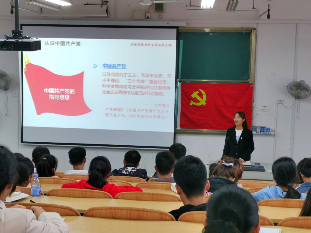 本科生第二党支部于04109教室开展新生入党启发教育大会。会议由支部宣传委员韩菲同志主持,支部部分预备党员、入党积极分子及21级环境工程专业新生参加会议。