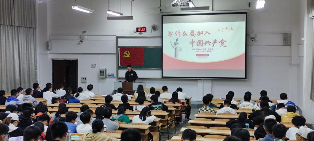 活动伊始,支部书记潘泓序老师围绕党的基本理论知识展开演讲,对党的认识、党的事业发展需要青年、青年的成长离不开党的培养、如何以实际行动争取早日入党等几个方面进行详细讲解,使新生们对入党有更清晰的认识。