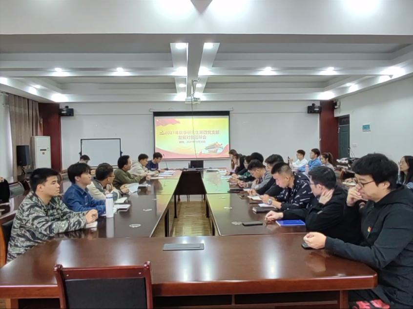 研究生第四党支部在雁山校区12407会议室开展2021年秋季学期发展对象答辩会,全体党员参加本次会议,会议由副书记石谦主持开展。