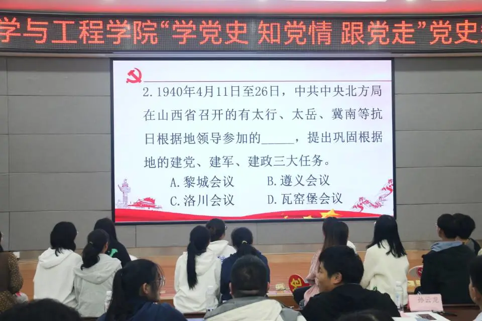 通过这次党史竞赛,同学们更加深刻的了解到了党史,党纪,党规等的相关知识,从中感悟到了党的精神力量,也增进了对马克思主义的信仰、对中国特色社会主义的信念、对实现中华民族伟大复兴的中国梦的信心。