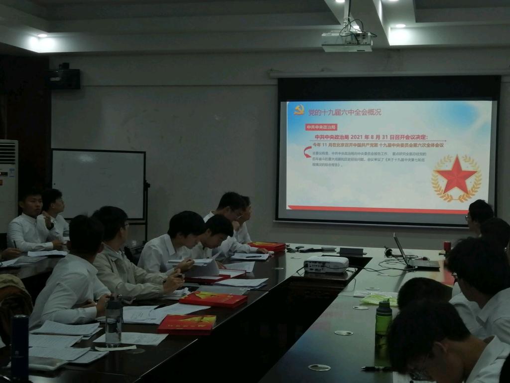 本科生第四党支部在12407会议室开展主题党日活动:《学习十九届六中全会精神》。会议主持人从“十九届六中全会概况”和“中共中央关于党的百年奋斗重大成就和历史经验的决议”两部分对十九届六中全会的主要内容进行了详细的梳理,为支部同志进一步深入领会党的十九届六中全会精神深刻内涵和伟大意义起到了引领作用。