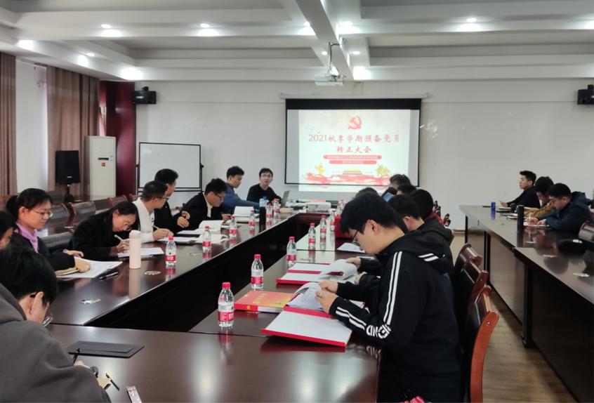 研究生第四党支部在雁山校区12407会议室召开2021年秋季学期预备党员转正大会。本次大会应到党员人数符合会议召开要求,本次会议由支部副书记石谦同志主持。