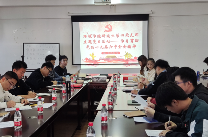 研究生第四党支部在12407会议室开展学习贯彻党的十九届六中全会精神主题党日活动,全体党员参加本次活动,活动由党支部副书记石谦主持开展。