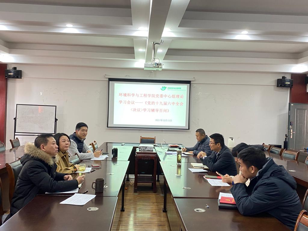 在雁山校区萃华楼12407会议室开展党委中心组(扩大)理论学习会,专题学习《党的十九届六中全会〈决议〉学习辅导百问》一书,学院全体党政领导班子、党支部书记、各教研室负责人参加会议,学习会由学院党委书记姜子亮主持。