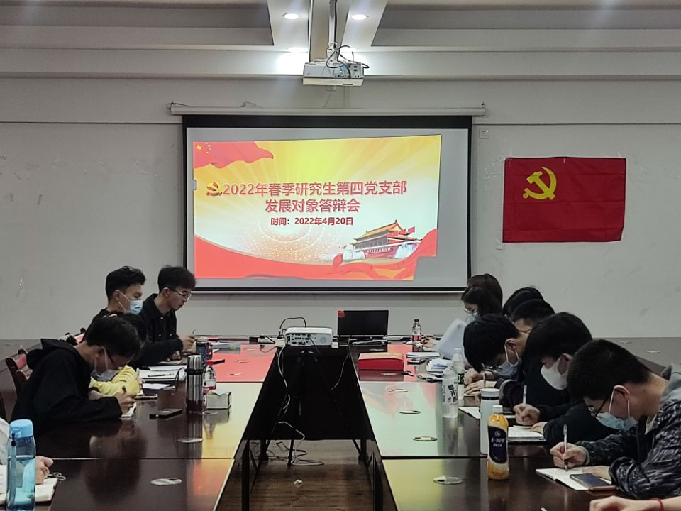 研究生第四党支部在雁山校区12407会议室召开2022年春季发展对象答辩会。全体党员参加本次会议,会议由党支部副书记石谦主持开展。