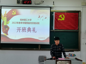 典礼在庄严的国歌中正式拉开序幕,与会全体成员起立,奏唱国歌。开班仪式上,测绘地理信息学院专职组织员吴莲莲发表致辞,她首先对本次预备党员培训班开班表示祝贺,并向全体预备党员提出三点希望:一是认真学习,必须要努力了解党的基本理论,基本路线,基本纲领,基本经验,了解党员的权利与义务;二是端正入党动机,要在思想和行为上更进一步向党组织靠拢,树立正确的三观;三是珍惜本次培训机会,严格遵守课堂纪律。