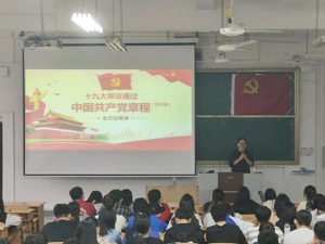 、公共管理与传媒学院、艺术学院、商学院、测绘地理信息学院)联合分党校第联合分党校第二十三期预备党员培训班在06105开讲,本次党课的主题为《中国共产党章程》,由学校艺术学院党委书记白凌婷担任主讲,共有200余名预备党员参加。