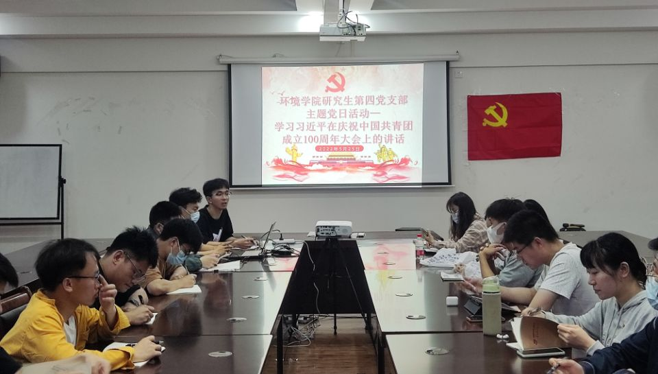 研究生第四党支部在雁山校区12407会议室召开主题党日活动——学习习近平在庆祝中国共青团成立100周年大会上的讲话。支部全体同志参与本次活动,活动由党支部副书记石谦主持开展。