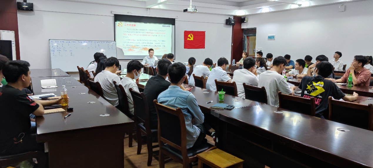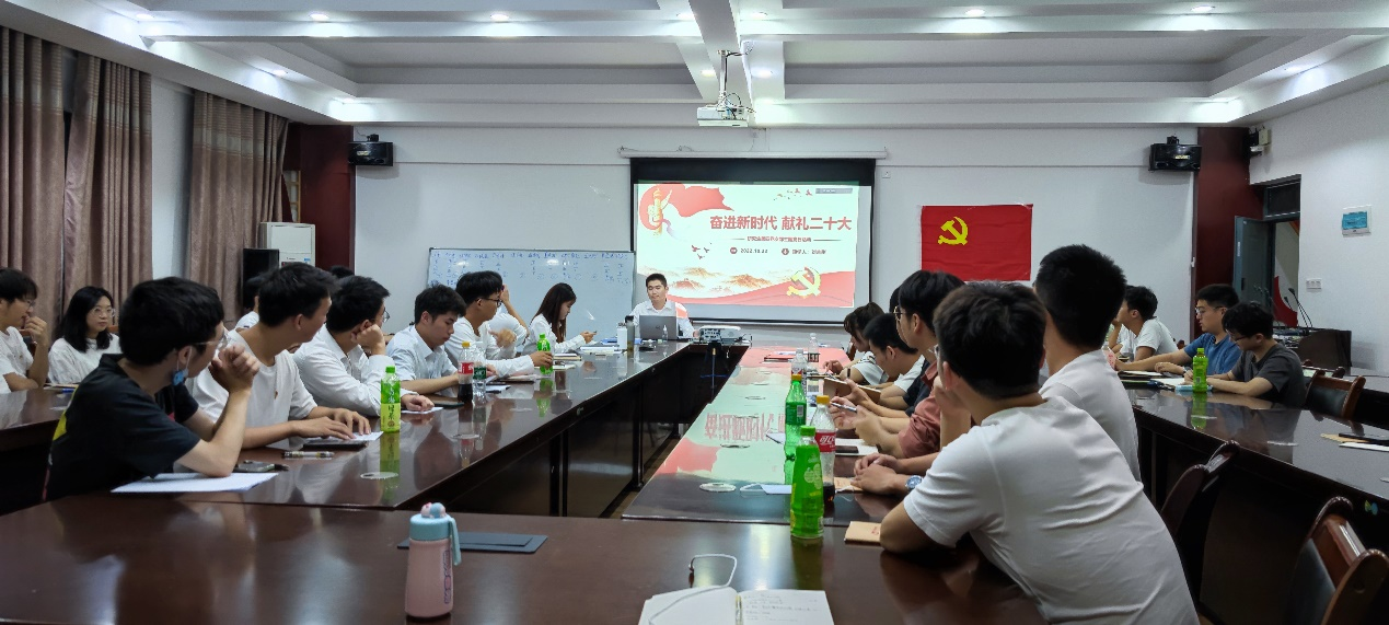 支部全体党员在支部副书记刘吉刚的带领下认真学习了习近平总书记代表第十九届中央委员会向党的二十大作的报告中的部分内容。大家积极讨论交流,相互分享各自的心得体会。习近平总书记的报告内容丰富,意义深刻,振奋人心,每一位党员都应坚定贯彻落实好党的二十大精神,刘吉刚指出,作为一名学生党员,尤其是研究生党员,要勇敢肩负起光荣使命和重大任务,满怀信心和决心,全力以赴在科研的工作岗位上,持之以恒,不忘初心、牢记使命。