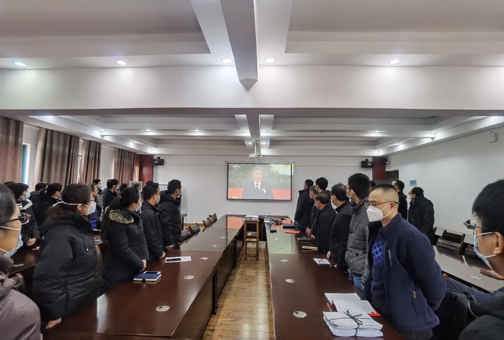 国旗半垂、举国同悲。上午10时整,追悼大会开始。参加追悼大会的全体人员身着黑衣,怀着悲痛的心情,肃立默哀3分钟,表达对江泽民同志的殷殷追思,深切缅怀江泽民同志的光辉业绩。随后,大家认真收听收看了习近平总书记在江泽民同志追悼大会上致悼词,向江泽民同志深深三鞠躬。