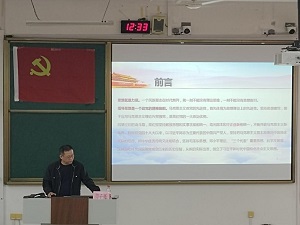 在党课开始之前,全体学员合唱了《我和我的祖国》,激发了学员们爱国爱党的情怀。课上,姜子亮书记引史综事,重点指出:习近平新时代中国特色社会主义思想是立足时代之基、回答时代之问的科学理论,是系统完备的科学体系、特色鲜明的理论品格,是经过时间检验、富有实践伟力的强大武器,是21世纪的马克思主义、当代中国马克思主义。最后,姜子亮书记总结道,习近平新时代中国特色社会主义思想,在党领导人民推进“四个伟大”的历史进程中,展现出了强大的真理力量,得到全党、全国各族人民的政治认同、思想认同、感情认同,成为指引为中国人民谋幸福、为中华民族谋复兴的思想旗帜,成为凝聚中国人民勠力同心、奋勇前进的精神之魂。是党和国家必须长期坚持的指导思想。