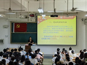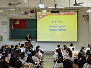 分党校在雁山校区06104教室开展2023年春季学期发展对象培训班第四讲,本次党课由外国语学院党委副书记邓洁琼担任主讲人。