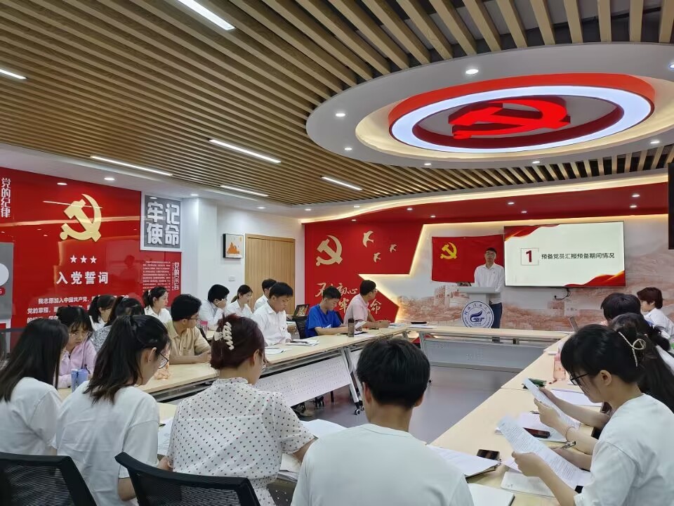 本科生第二党支部在明园一站式学生社区召开预备党员转正及发展对象转预备党员接收大会。本次会议由支部副书记邹雅轩同志主持,支部书记唐源江同志、全体党员、预备党员及发展对象参加本次会议。