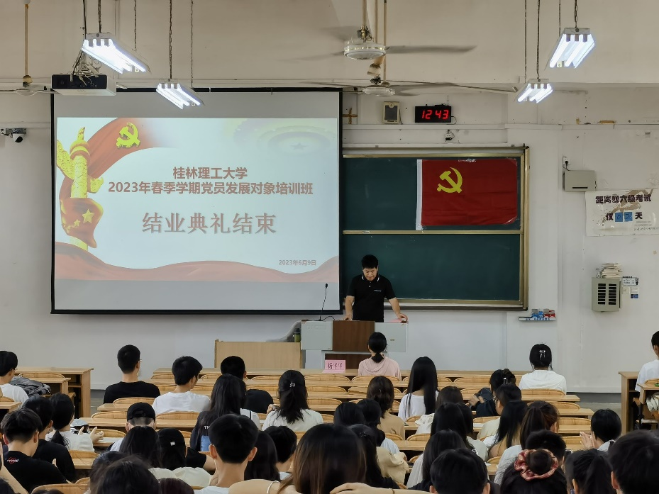 党建组织员、党建办公室主任杨平平老师作结业总结,他总结了培训成效,同时希望和要求发展对象要树立坚定理想信念,提高自身党性修养,确定终身学习理念,提高自身综合素养,注重理论联系实际,提高自身工作能力,在工作上创佳绩、争先进、做表率,以优异成绩接受党组织的考验。最后,由杨平平、黄皓珊老师对优秀学员进行颁奖。