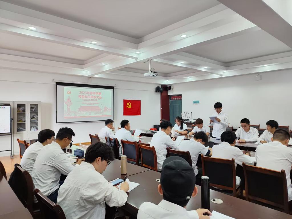 本科生第四党支部于雁山校区12407会议室召开2023年春季学期预备党员接收大会。会议由党支部书记杨平平老师主持,支部全体党员同志参与本次会议。本次会议的议题是讨论关于杜耿旺等六名发展对象按期接收成为中共预备党员的问题。