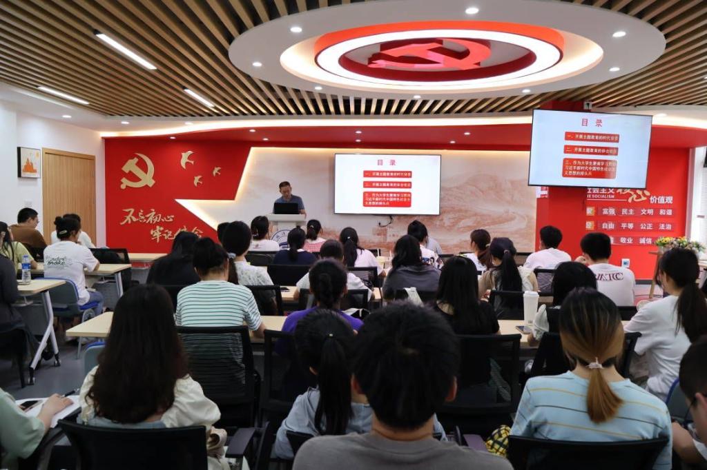 在明园一站式思政大讲堂开展“作为大学生要做学习贯彻习近平新时代中国特色社会主义思想的排头兵”专题党课,由学院党委书记姜子亮主讲,各支部党员及预备党员参加。
