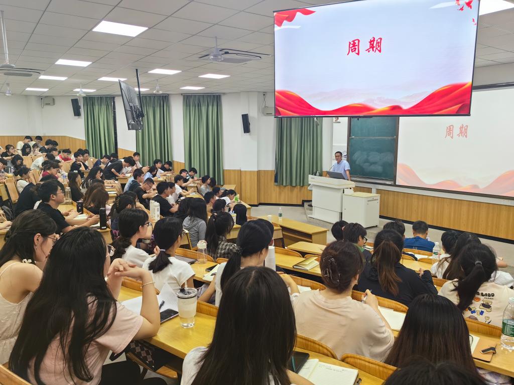 、商学院、艺术学院联合分党校2024年春季学期党员发展对象培训班讲授题为《坚持自我革命 永葆“赶考”初心》专题党课,联合分党校全体培训班学员参加党课学习。