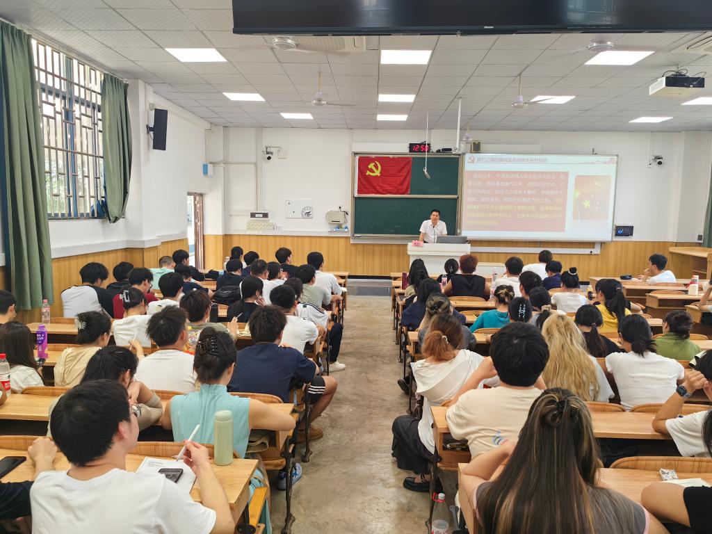 、数学与统计学院、物理与电子信息工程学院、商学院、艺术学院联合分党校第二十七期预备党员培训班全体学员讲授题为《铸牢中华民族共同体意识》专题党课,联合分党校培训班全体学员参加党课学习。