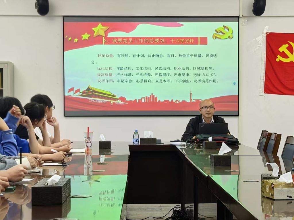 学院党委委员、组织员作了题为《党员发展程序及常用文书写作》的专题培训,他结合工作实际,对党员发展程序及要求、相关材料撰写等方面进行了详细讲解。