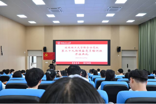 ,物理与电子信息工程学院、数学与统计学院、艺术学院、商学院联合分党校第二十九期预备党员培训班暨第一讲在雁山校区03316报告厅顺利举行。五个学院党组织代表、教员及全体参训预备党员参加此次会议,本次会议由物理与电子信息工程学院党校教务员夏琳主持。