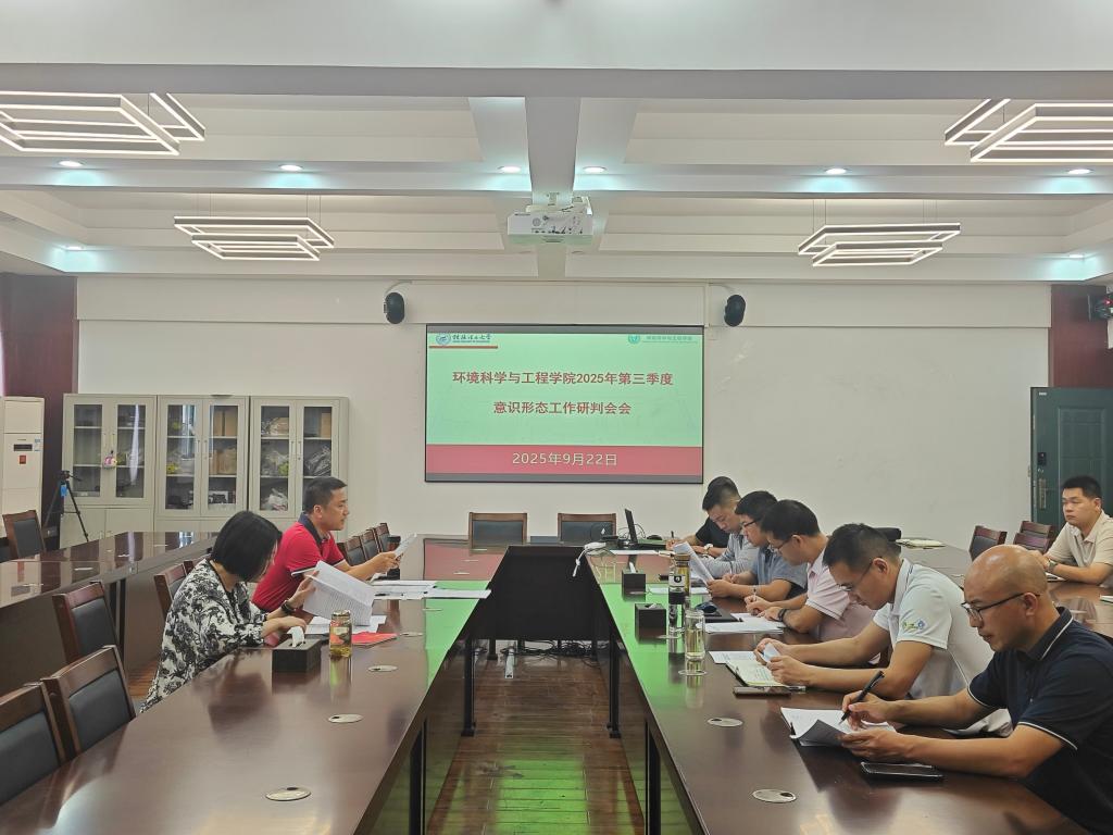 在雁山校区12407会议室召开2025年第三季度意识形态工作研判会。学院党委领导班子成员、党政办主任、各党支部书记参加会议。会议由学院党委主要负责人主持。