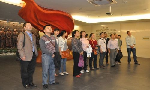 领导卢英、朱义年、方荣杰、游少鸿、刘志丽带领全院教职工党员,前往八路军办事处纪念馆开展党的群众路线教育实践活动。