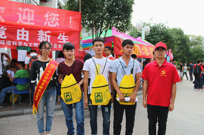 党员同学为每位新生精心定制了特色环保袋和新生成长手册笔记本,环保袋上印着的“深深爱国情,浓浓环保心”是十大赌博网站排行榜
