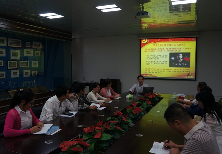 全体党员认真学习了《中国共产党廉洁自律准则》文件,深刻地认识到廉政建设对实际工作岗位的重要性和必要性以及紧迫性,要紧跟时代步伐,积极响应中央的号召,时刻不忘廉洁自律、勤勉工作,将清正廉洁贯穿于日常的思想和各项具体工作之中,努力做到廉政纪律不可忘,腐败红线不可触,公仆之情不可移。