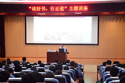 首先,王璐老师以风趣幽默的开头激起了在场听众的兴趣,接着,他以 “我们为何而读书?“引出讲座主题,同时通过生活中许多经典事例和时事政治,让同学们了解到,在这个信息爆炸的时代,静下心来读一本好书也能够成为一件享受的事。除此之外,他还为听众们解读了一些古今中外的经典书籍和现代影视作品,从自身阅历出发到呈现作品意境,从金庸小说到前卫的韩剧,这让同学们除了有听觉上的享受外,更有视觉上的画面冲击感。讲座全程充满着与同学们的思维互动。