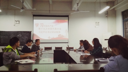 会前,党支部要求全体党员认真研读了习近平总书记在中国共产党第十九次全国代表大会作的报告全文。会上,支部副书记王蓝青同志带领支部成员一一分享了学习心得,并由陈中维同志为大家分享了王璐书记在党课上指出的党的十九大要点学习情况。支部书记唐红兵老师作总结发言。