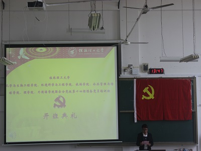 、化学与生物工程学院、旅游学院、公共管理与传媒学院、理学院、外国语学院联合分党校第十四期预备党员培训班开班典礼在雁山校区06206教室隆重举行。化学与生物工程学院党校副校长、党委副书记陶剑飞老师、旅游学院党校副校长、党委副书记叶婷老师、理学院党校副校长、党委副书记孙巍老师、十大赌博网站排行榜