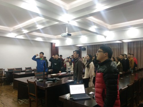 会末,全体支部成员庄严宣誓,“为共产主义奋斗终身,随时准备为党和人民牺牲一切”的誓言振奋人心。