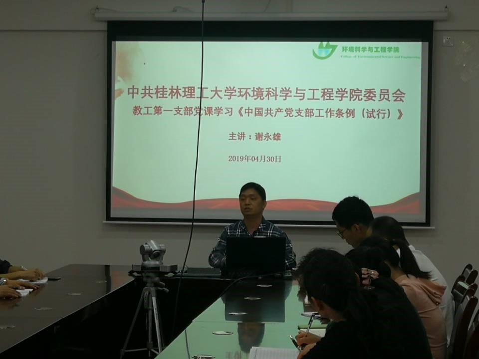 会上,党支部书记谢永雄同志利用ppt方式组织大家学习了《中国共产党支部工作条例(试行)》等内容。