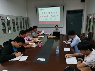 本科生第四党支部在雁山校区12415组织学习了《中国共产党支部工作条例(试行)》,本次会议由党支部书记陆琴同志主持。
