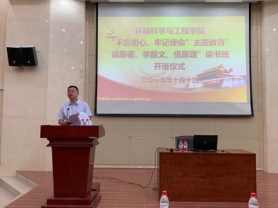 在雁山校区萃华楼一楼报告厅举行“不忘初心、牢记使命”主题教育“读原著、学原文、悟原理”读书班开班仪式暨理论学习辅导报告,学院全体师生党员参加,会议由院党委书记姜子亮主持。