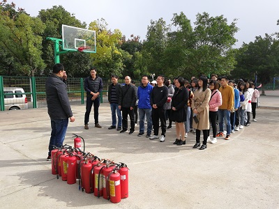 姜子亮书记进行了演练前动员,要求坚定政治信念,勇于担当责任,大家在平时的学习生活中熟悉撤离路线、提高防火自救能力,并现场示范了干粉灭火器材的正确使用方法;随后,全体人员依次使用干粉灭火器进行了现场灭火演练;最后,曾鸿鹄院长警醒大家要增强安全意识,严防事故发生,掌握消防技能。