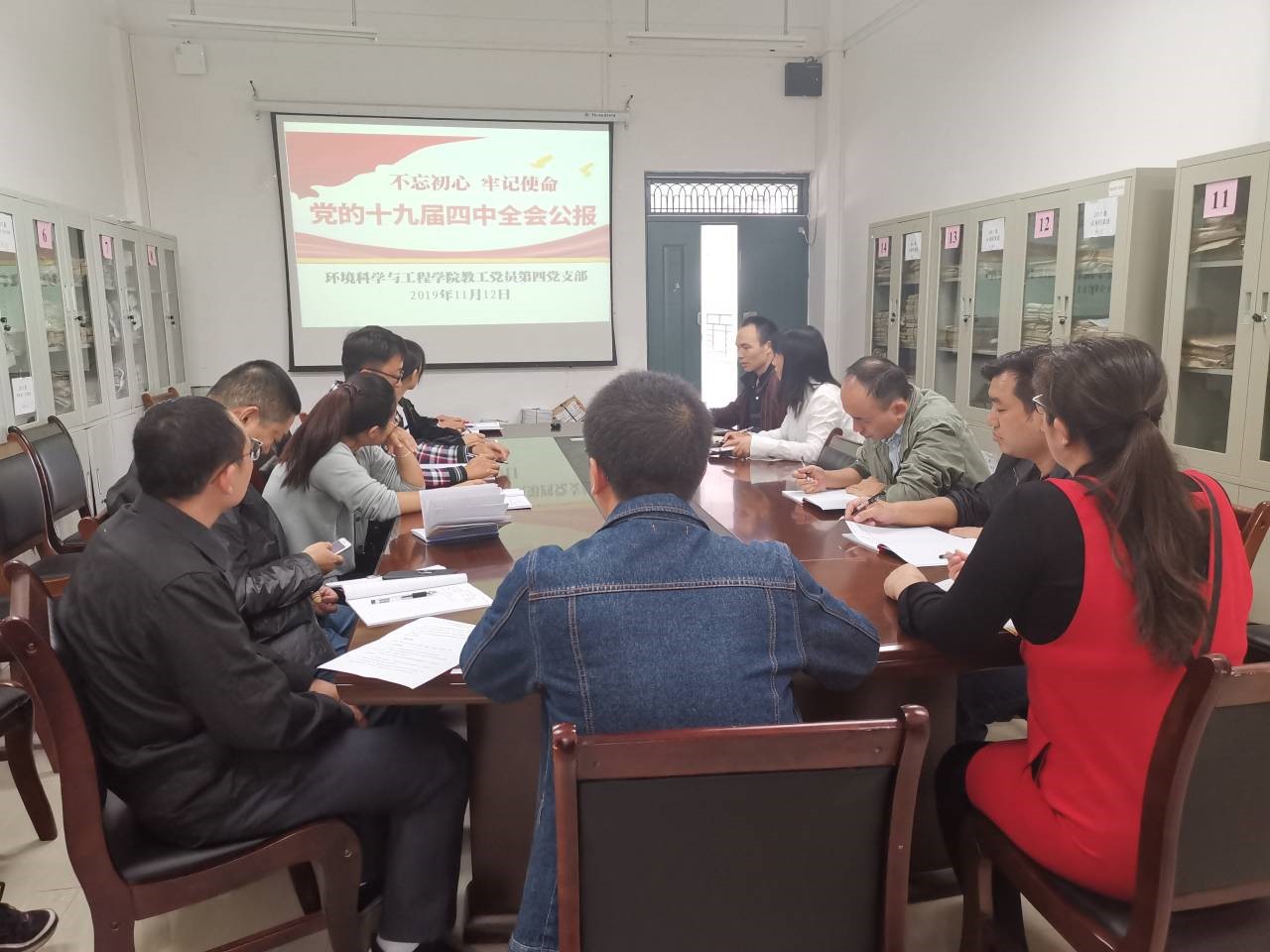 教工四支部在雁山校区12414会议室组织学习“党的十九届四中全会精神”。本次会议由教工四支部书记梁延鹏同志主持,支部全体在校党员出席。
