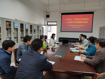 会上,覃礼堂同志解读《中国共产党第十九届中央委员会第四次全体会议公报》的主要内容,全体党员同志学习会议重要精神,包括坚持和完善中国特色社会主义制度、领导制度体系、人民当家作主制度体系、中国特色社会主义法治体系、中国特色社会主义行政体制,构建职责明确、依法行政的政府治理体系、社会主义基本经济制度,推动经济高质量发展、共建共治共享的社会治理制度等重要内容。会后,参会同志根据所从事的环境科学与工程专业,就“坚持和完善生态文明制度体系,促进人与自然和谐共生”进行互动交流。