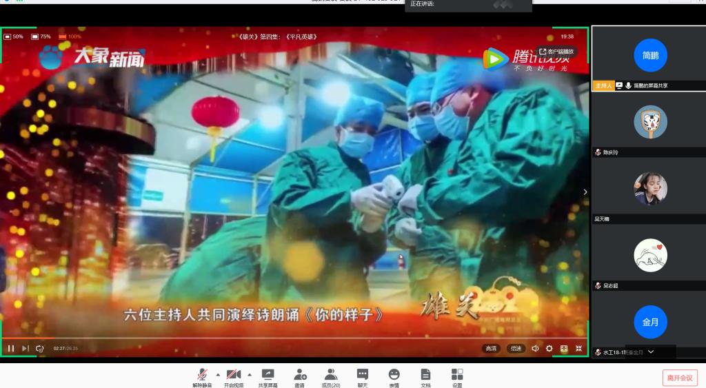 最后支部副书记简鹏总结,新冠疫情防控依然不能松懈,作为学生党员我们更应该严格执行纪律,充分发挥作用,向疫情中的每一位英雄学习、致敬,争当疫情前线的先锋兵。