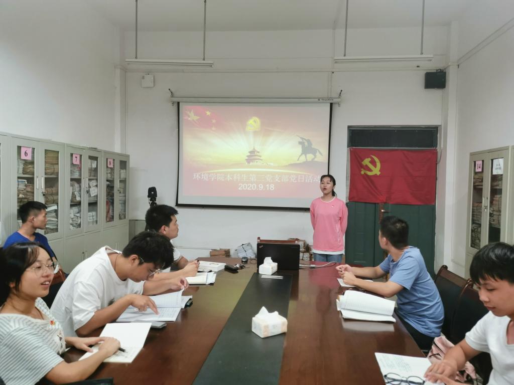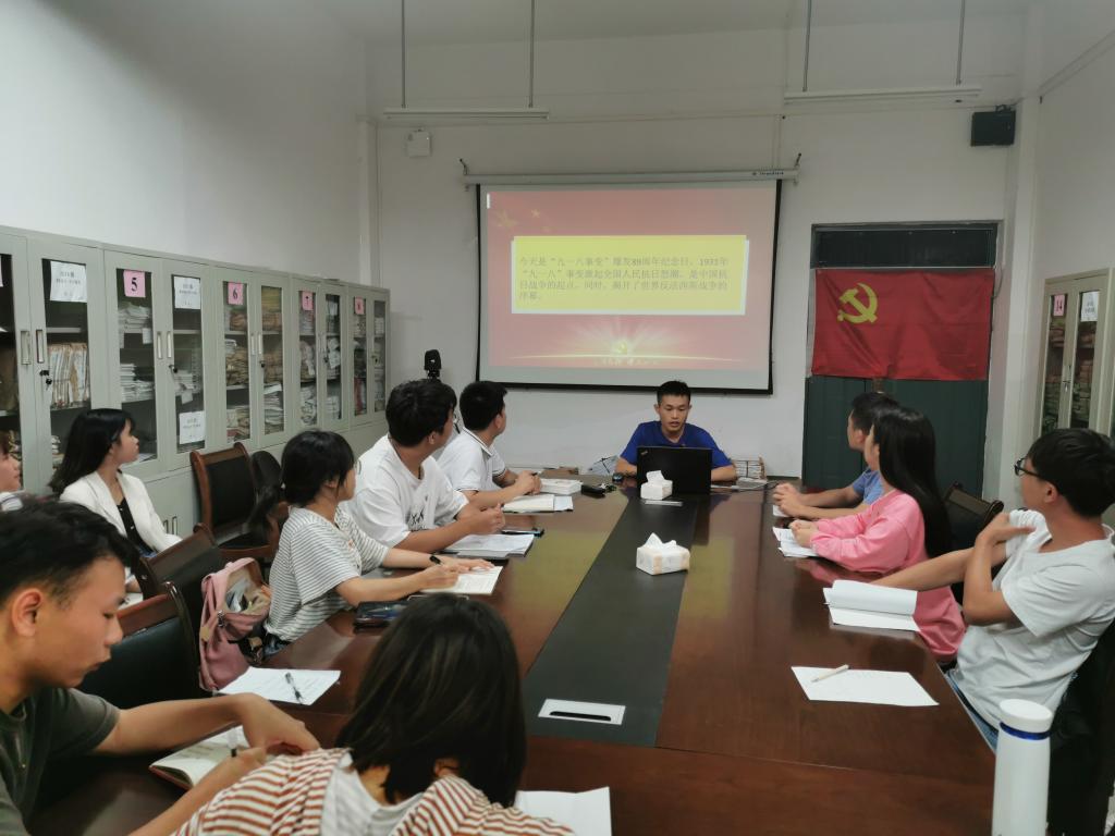 学生第三党支部于雁山校区12415会议室召开了以纪念九一八事变为主题的党日活动。