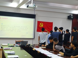 会议宣布后,预备党员同志们,分别面对党旗进行庄严宣誓,也向大会表达了自身的想法与决心,不忘初心跟党走,在今后的学习工作中,坚定目标、严格要求自身,努力改正现有不足,积极向优秀共产党员学习树立先锋模范作用,争取早日正式加入中国共产党。