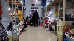 党员与舍管委成员组成的检查小组,进入学生宿舍,进行了服务、安全隐患排查与打分工作,工作现场井然有序。
