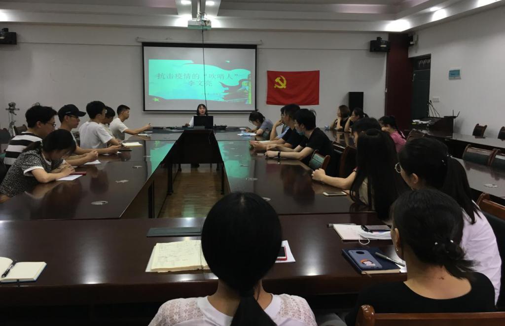 研究生二支部在雁山校区萃华楼12407会议室举行“迎党的生日 讲战疫故事 悟初心使命”主题党课活动。学习会由支部副书记刘洁雪同志主持,党支部全体党员同志参加会议。
