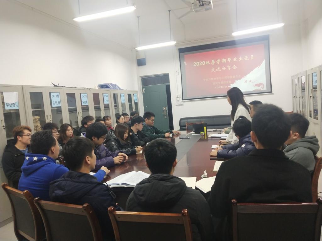 研究生第四支部在雁山校区12414会议室召开2020年秋季学期毕业生党员交流分享会,由2018级硕士研究生廖丹雪同志、陈辉同志向其低年级党员同志分享他们研究生成长经历和感悟,会议由党支部副书记刘允全(2020级硕士研究生)同志主持。