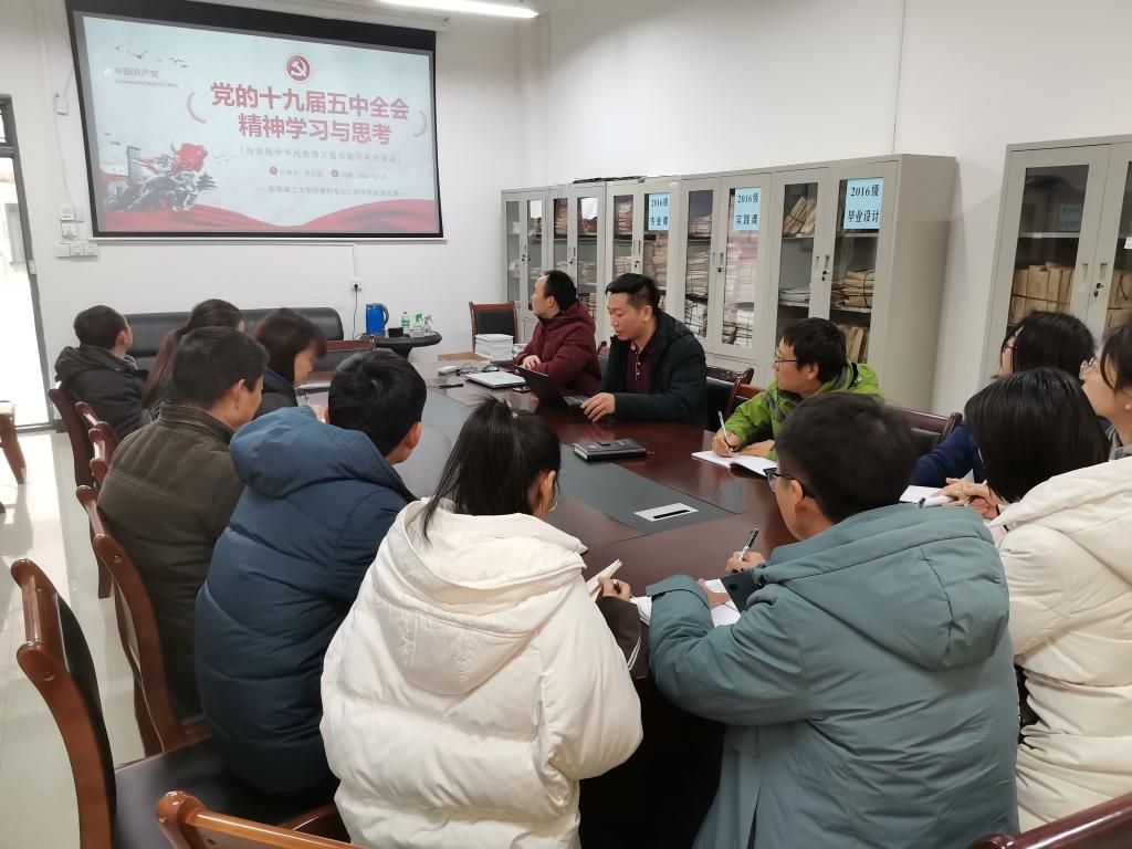 教工第四党支部在12414会议室开展“党的十九届五中全会精神学习与思考”主题党课,教工第四党支部全体党员参加学习,党课由学院党委委员朱宗强主持。
