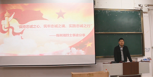 杨老师从烈士生平、孤军奋战、忍辱负重、断肠明志四个方面介绍了陈树湘传奇的一生。他讲述到:陈树湘作为一名党员,顾全大局、牺牲个人,履行了自己的入党誓词;作为一名红军指挥员,他遵守纪律,服从命令,担负应有的责任。在新的时代,我们要自觉学习陈树湘“断肠明志”的担当奉献精神,把人民放在心中最高位置,保持战略定力和对事业的坚韧,做执着奋进、担当实干的先行者,立足岗位无私奉献,走好新时代的长征路。