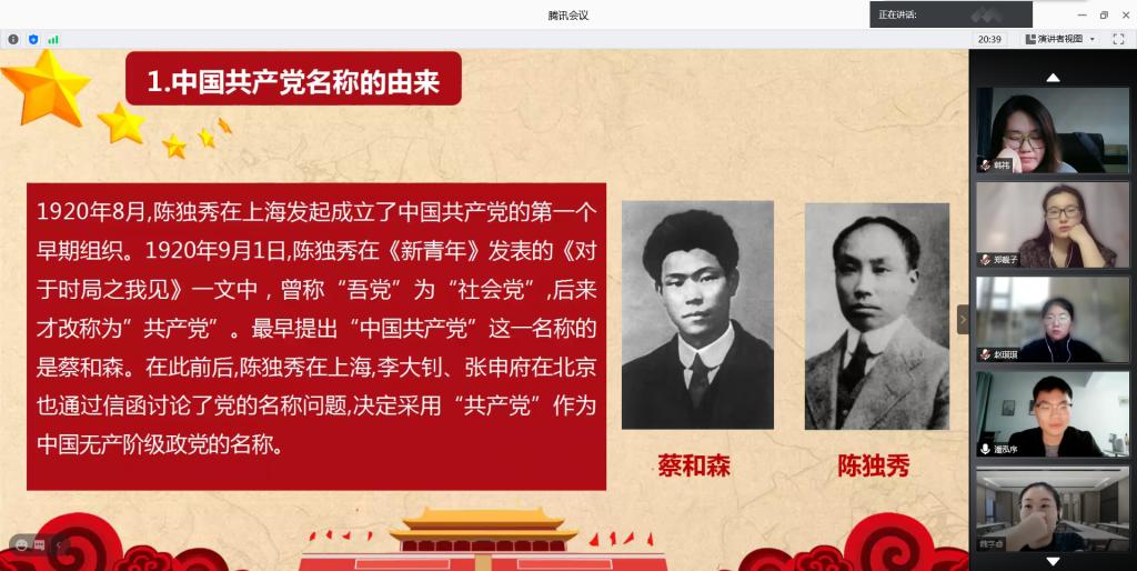 本科生第一党支部在线上开展“学党史 悟思想 办实事 开新局”主题党日活动。本次活动由支部书记潘泓序主持。