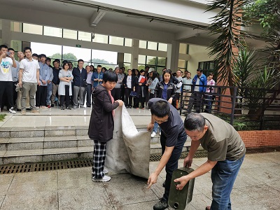 在雁山校区萃华楼开展了消防安全演练活动。学校党委常委、副校长王敦球到场指导并作消防安全演练动员部署,保卫处相关同志、学院全体教师和学生代表参加了此次演练。