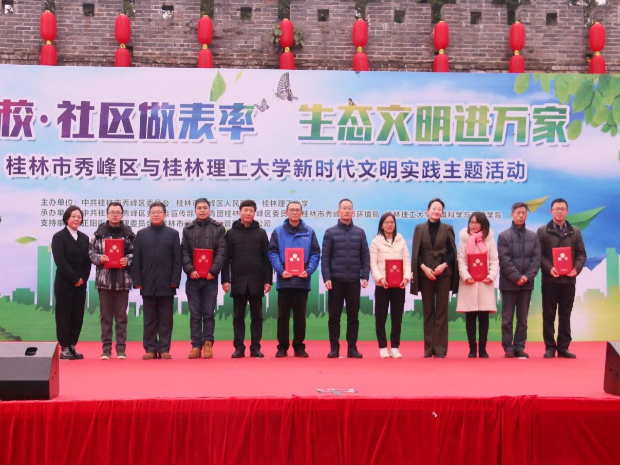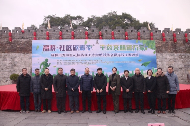 为深入贯彻落实党的十九届五中全会精神,让“绿水青山就是金山银山”生态文明理念深入人心,全面提高在校大学生、市民生态环保意识,进一步加强高校与地方联系,发挥高校服务社会的职能,12月14日下午,以“高校·社区做表率、生态文明进万家”为主题的新时代文明实践主题活动在桂林市秀峰区东西巷拉开帷幕。桂林理工大学校长解庆林,秀峰区委副书记、副区长刘丰华,桂林理工大学党委副书记吴志强及秀峰区四家班子分管领导,桂林理工大学各职能部门及十大赌博网站排行榜