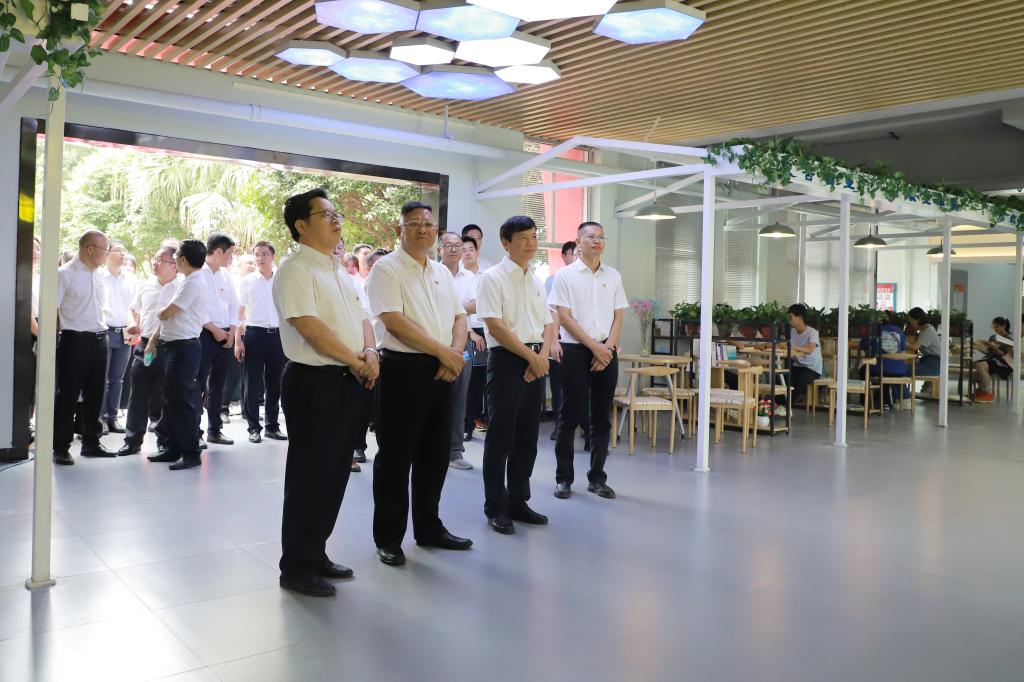 9月29日上午,学校明园“一站式”学生社区揭牌仪式在雁山校区一号组团6#宿舍举行。学校党委书记邓军,校长解庆林,党委副书记吴志强,党委常委、宣传部部长叶昊、统战部部长邱杰出席仪式。相关职能部门、学院主要负责人,各学院分管学生工作的党委副书记、辅导员代表及2022级新生代表参加仪式。